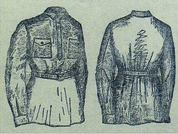 Рубаха суконная с прорезными карманами для всех родов войск образца 1931 года. (Из описания ведомственного стандарта ВСТ 320-03-А.) суконная рубаха состоит из следующих частей: передней части, по середине имеющей планку, застегивающуюся тремя сквозными петлями на три металлические пуговицы с красноармейской звездой, спинки, стояче-отложного воротника, застегивающегося посредине на два металлических крючка, двух клапанов нагрудных карманов, пристегиваемых к рубахе красноармейской пуговицей, рукавов без складок внизу с обшлагами, застегивающимися двумя петлями на две красноармейские пуговицы. Клапаны прикрывают прорезные внутренние карманы.