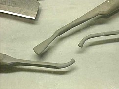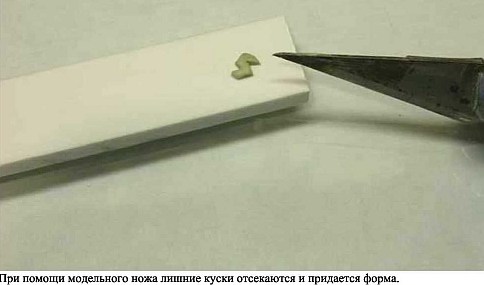Придание формы: лезвием № 11 я соскребаю лишний материал, работая широкими «мазками». Такой метод позволяет убирать небольшие колличества миллипата зараз и осуществлять больший контроль за очертаниями формы.