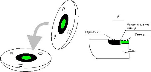 2. бросаем сверху склеенное из фольги колечко (по диаметру диска) и заливаем смолой оставшийся объем (но не выше границы разъема формы);